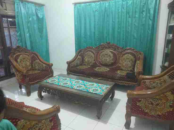 Rumah ini juga memiliki material yang terbilang kuat. Kayu merbau asli pada kusen dan pintu memberikan kesan kokoh dan tahan lama, sementara lantai keramik penuh membuat rumah mudah dibersihkan dan dirawat.